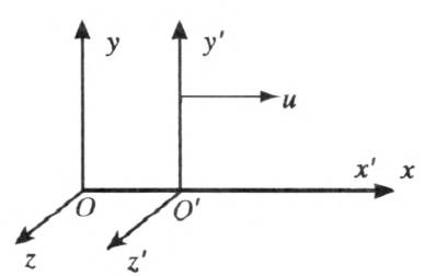 其中 β = \(\frac{u}{c}\)。注意到此时间间隔是用 S 系内不同位置的钟测得的,所以 Δt 尚不是 S 上某个特定观察者测得的光波周期。为了得到同一个观察者,例如观察者 O 测得的光脉冲的周期值,还需要考虑光源 Oʹ 运动所带来的影响。譬如设光源 Oʹ 远离 S 系上的观察者 O 而去,如图 3–22 所示。Oʹ 发出的相邻光脉冲到达观察者 O 还需要多走过一段距离 uΔt。所以,观察者 O 测得光脉冲的周期 T 为