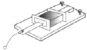 (2)如没有现成的仪器,可以自制。图 3–27 是利用电磁打点计时器改装的振源,图 3–28 是用玩具电动机加上偏心轮制作的振源。