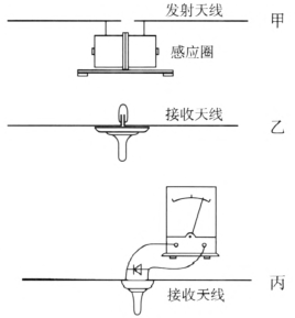 (6)取下接收器的氖泡,在两根拉杆天线的邻近端接上一只晶体二极管(2 AP 型),然后再与电流表并联(图 4–12 丙)。重复上述过程,当接收器收到电磁波时,电流表的指针就发生偏转,接收距离可达几米。