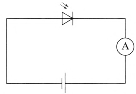 光电二极管的结构与一般二极管相似。它装在透明玻璃外壳中,其 PN 结装在管的顶部,可以直接受到光照射。光电二极管在电路中一般是处于反向工作状态(图 5–11),在没有光照射时,反向电阻很大,反向电流很小,这种反向电流称为暗电流。当光照射在 PN 结上时,光子打在 PN 结附近,使 PN 结附近产生光生电子和光生空穴对。它们在 PN 结处的内电场作用下作定向运动,形成光电流。光的照度越大,光电流越大。因此光电二极管在不受光照射时,处于截止状态,受光照射时,处于导通状态。