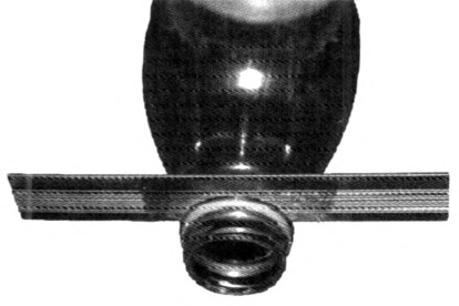 如图 1–16 所示,用钢锯在靠近瓶口的瓶颈处,平行瓶口锯开一个窄缝,缝深约为瓶颈的一半,用塑料尺插入窄缝中,控制钢珠的流量。