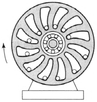 (1)文艺复兴时期意大利的达·芬奇早在 1 5世纪就提出过永动机不可能的思想。他曾设计过一种转轮(图 3–4),利用隔板的特殊形状,使一边重球滚到比另一边的距离轮心远些的地方,本以为在两边重球的作用下会使轮子失去平衡而转动不息,但试验的结果却是否定的。他从许多类似的设计方案中认识到永动机的尝试是注定要失败的。他写道:“永恒运动的幻想家们!你们的探索何等徒劳无功!还是去做淘金者吧!”