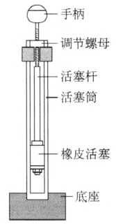 仪器由活塞和活塞筒组成,如图 3–9 所示,活塞包括手柄、活塞杆和橡皮活塞。活塞筒由厚壁有机玻璃制成,固定在底座上。