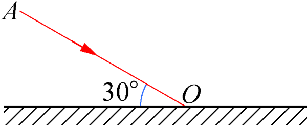 3.与镜面夹角为 30° 的入射光线 AO 经平面镜反射后,反射角多大?在图 4–1–19 中,画出反射光线 OB,并标出入射角和反射角。