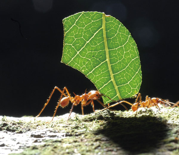 如图 5–3–2 所示,两只蚂蚁能搬动的一片树叶,一只蚂蚁也可以搬动;几个人一起用力能把抛锚的汽车从雪地里推出,用一辆牵引车也能将其拖出。可见,一个力作用在物体上产生的效果可以与几个力共同作用在这个物体上产生的效果相同。