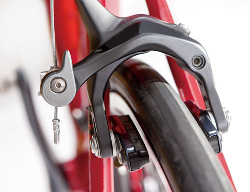 通常,人们通过改变接触面所受压力、接触面的粗糙程度来改变摩擦力的大小。如图5–4–4所示,用力捏自行车的刹车把手,能增大刹车片与车轮间的压力,从而增大摩擦力以降低车速;在轮胎上绑一条防滑链,能增加接触面的粗糙程度,从而增大摩擦力,提升汽车在冰雪路面上行驶的安全性。为了减小摩擦的影响,我们可以减小压力,使接触面变光滑,也可以在接触面之间加润滑油,还可以用滚动替代滑动。