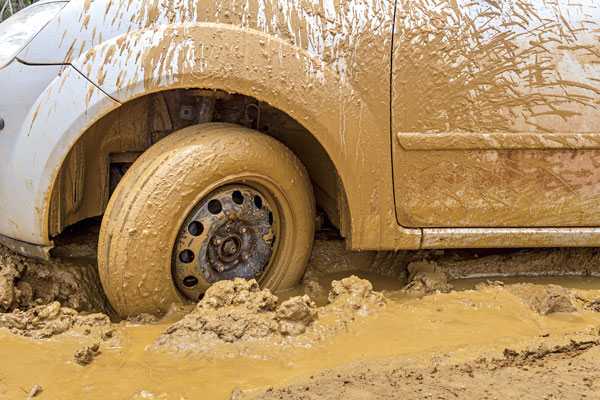 3.如图 5–4–6 所示,一辆车在泥地中行驶,车轮陷入泥坑中打滑,简述帮助驾驶员驶出泥坑的方法。