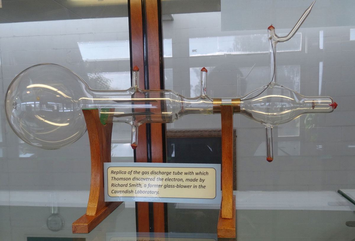 1858 年德国人普鲁克尔在研究气体放电时,注意到在放电管正对阴极的管壁上发出绿色的荧光,证明是某种射线从阴极发出打到管壁所致。这一射线后来就叫做阴极射线。他和另一位德国物理学家哥尔茨坦都认为这种射线是一种以太波,因为这种射线按直线行进,对物质有化学作用,性质上类似于紫外光。