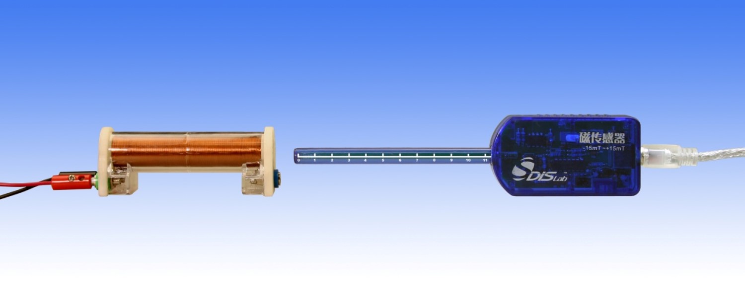 可使用“清除本次数据”功能,清除表格中的数据,保留已有图线(不要点击“清屏”按钮!否则将擦除已有图线),改变供电电压,重复上述实验步骤,绘出电压变化后的磁感强度图线,将两条图线并行在同一窗口内加以比较;更换不同直径的螺线管,重复上述实验,观察内部磁场的分布有何变化。亦可使用DISLab专用螺线管(图17-4),描绘并观察匀强磁场内的磁感强度图线。