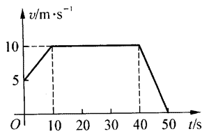 4.右图是一辆汽车做直线运动时的v-t图,汽车的初速度是______;最大速度是______;末速度是_______,它从t=到t=10s间,做______运动,加速度是_____,经过的路程是______;从t=10s到t=40s之间,做______运动,经过的路程是____;从t=40s到t=50s,做_____运动,加速度是______,经过的路程是______。