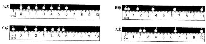 11.图中表示四个小球向右运动过程的闪光摄影照片,闪光时间间隔为0.05s。