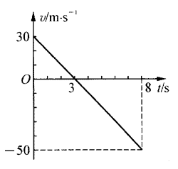 由图可知,以竖直向上方向为正方向,该物体上抛时的初速度为30 m/s,落地时的末速度为-50 m/s,加速度为-10 m/s2,上抛3 s后到达最高点,从最高点落到地面需时5 s,物体上升的最大高度在抛出点上方45 m处,落地点在抛出点下方80 m处;速度和位移随时间变化的函数关系分别是:v=30-10t,s=30t-5t2