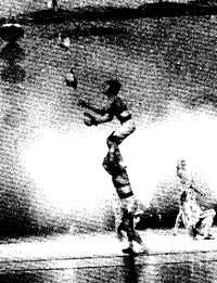 33.类似图中的杂技表演,假设杂技演员依次竖直向上抛出4个小球,每个小球上升的最大高度均为1.25 m。假定该演员抛出一个球后立即接到另一个球,使空中总有三个球,手中留有一个球。求:每个球在演员手中停留的时间。