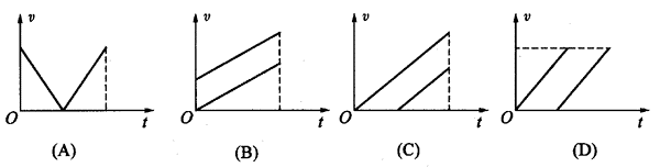 203.两个小球从两个不同高度处自由下落,结果同时到达地面,如图所示四幅图中,能正确表示它们的运动情况的是图( )。