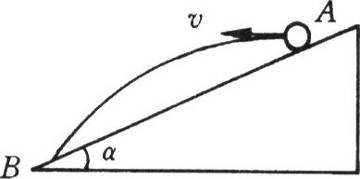 104.如图所示,在倾角α的斜面上A点,以速度v水平抛出一小球,空气阻力不计,落在斜面上的B点。求: