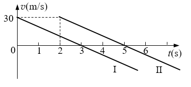 103.如图所示,图线I和Ⅱ分别表示先后从同一地点以相同速度v作竖直上抛运动的两物体的v-t图线,则两物体( )