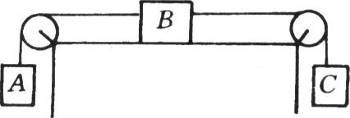 5.如图所示,A、B、C三块木块质量分别为M、m和m0,连接的绳子不可伸长,且绳子和滑轮质量、滑轮的摩擦均不计,若B随A一起沿水平桌面作匀速运动,则可以判定( )