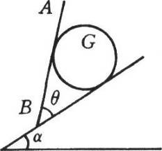 21.如图所示,G为光滑圆柱,置于光滑斜面上,挡板AB可绕B点转动。挡板与斜面间的夹角θ<90°。当转动挡板使θ逐渐变大直至AB板水平的过程中,AB板受到的压力大小将 ( )