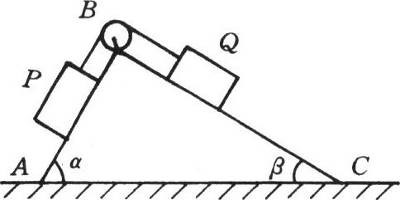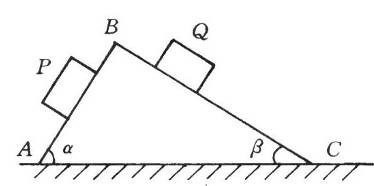 28.如图所示,质量都为m的两物体P、Q分别从斜面体ABC的两个斜面AB、BC上同时匀速下滑。斜面体质量为M,AB面倾角为α,BC面倾角为β,两斜面和物体问的滑动摩擦系数均为μ,斜面体仍静止,则水平地面对斜面体的支持力大小为_______,水平地面对斜面体的摩擦力大小为________。