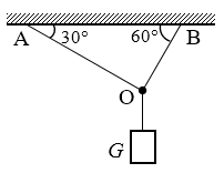 提示:先找出B处绳子拉力和A处绳子拉力的关系,TB=\(\sqrt 3 \)TA