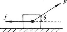 13.一重为G的物体与水平地面间的滑动摩擦系数为μ,拉力与水平方向成α角斜向右上方,如果物体在拉力作用下沿水平面向右作匀速直线运动,那么拉力的大小为F=_________,拉力与摩擦力的合力的方向是_________。