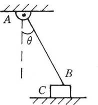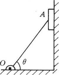 110.如图所示,重200 N的均匀杆OA,可绕过O点的水平轴自由转动,杆斜靠在竖直墙上,杆与水平面间的夹角θ=60°,墙与杆间夹有一张纸,纸的重及纸与墙间的摩擦力不计,纸与杆间的滑动摩擦系数μ=0.2。问要多大的竖直向上的力才能将纸向上匀速抽出?