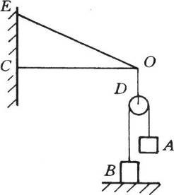 100.如图所示,杆CO长为0.5 m,C端铰于墙上,O端用轻绳OE系于墙上,并在O端下面挂一个光滑轻滑轮,滑轮下用轻绳跨过滑轮悬挂两个物体,物体A重2 N,物体B重5 N,物体B放在地面上,两绳都恰竖直,整个装置处于静止状态,则绳OD对杆的拉力对E点的力矩为______N·m。