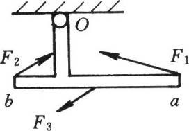 102.如图所示,T字形轻质支架abO可绕过O点的水平轴在竖直平面内自由转动,支架受到图示方向的F1、F2和F3的作用,则关于O点( )