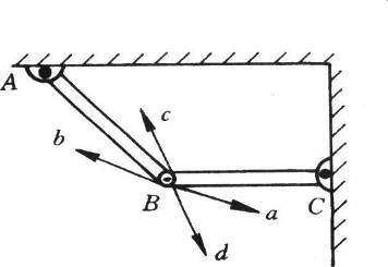 122.如图所示,两根均匀直棒AB、BC,用光滑的铰链铰于B处,两杆的另外一端都用光滑铰链铰于墙上,棒BC呈水平状态,a、b、c、d等箭头表示力的方向,则BC棒对AB棒的作用力的方向可能是( )