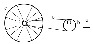 11.如图所示为自行车传动部分的示意图,a为脚蹬,Oa为曲柄,b、d为齿轮,c为链条,组成传动部分,e为后轮(主动轮)。已知Oa=25 cm,rb=10 cm,rd=4 cm,re=36c m,如果传动过程中无打滑现象,当脚蹬以每分钟30转绕轴O做匀速圆周运动时,自行车行进的速度多大?