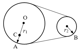 15.如图所示为一皮带传动装置,传动时皮带与轮之间不打滑,已知大轮半径和小轮半径的关系是r1=2r2,A、B分别为两轮边缘上的点,O为大轮圆心,C为大轮上的一点,OC为OA的\(\frac{2}{3}\),则传动时A、B、C三点的角速度之比为______,线速度大小之比为______。