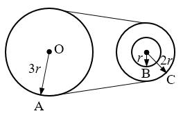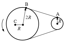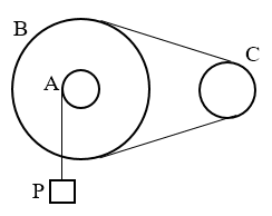 20.如图所示的皮带传动装置,传动时皮带与轮之间不打滑,已知大轮半径、轮轴的轮半径和轮轴的轴半径的关系是rA∶rC∶rB=3∶2∶1,A、B、C分别为大轮、轮轴的轴和轮轴的轮边缘上的点,O为大轮圆心,则传动时A、B、C三点的( )。