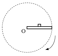 24.如图所示,一块长为L=\(\frac{{\sqrt 3 }}{3}\) m的板可绕过其一端的水平轴转动,一开始板处于水平位置,在板的正中间有一小物体。现使板突然以角速度ω绕过其一端O的水平轴顺时针匀速转动,问:ω满足什么条件时小物体和板能再次相碰?