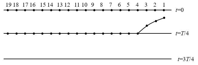 263.在一列简谐横波的传播方向上依次有相距L的两质点M和N,某时刻两质点都处于平衡位置,且M和N两质点间只有一个波谷。若波速一定,则由以上条件可以判定质点M第一次到达波峰时间的可能值有( )。