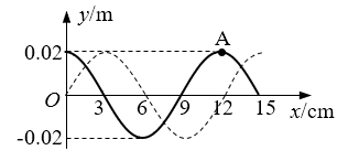256.一列简谐横波在t=0时刻的波形如图中实线所示,经过时间Δt后变成图中虚线所示的波形,已知波向左传播,时间Δt小于一个周期,图中坐标为(12 cm,2 cm)的A点,经过时间Δt后的振动状态传播到B点,则B点的坐标为(_____cm,_____cm),此时刻A点的坐标为(_____cm,_____cm),A点在时间Δt内通过的路程为_____m。