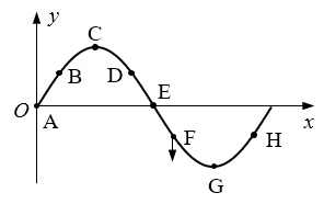 258.一简谐横波在x轴上传播,在某时刻的波形如图所示,已知此时质点F的运动方向向下,则在图中标出的点中,此时具有正方向最大速度的点是_____,具有正方向最大加速度的点是_____,动能在减小的点是_____。