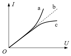26.如果考虑电阻随温度的变化,图中的三根图线中,_________较准确地表示了金属导体中电流与其两端所加电压间的关系。