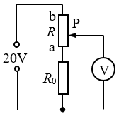 37.如图所示电路中,电路总电压为 U = 20 V,固定电阻 R0 的阻值为 2000 Ω,滑动变阻器 R 的滑片 P 由 a 向 b 移动时,电压表示数的变化范围是 8 ~ 20 V,则滑动变阻器 R 的阻值变化范围是_________Ω 到_________Ω。