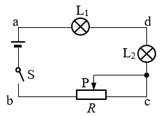 225.如图所示电路中,接通电键S后,无论如何移动滑动变阻器的滑片P,小灯泡都不亮,如果所有仪器都是好的,只是一根导线断了或是接触不好,现用多用表的直流电压10 V挡去测量,发现a、b间电压为0 V,c、d间电压为12 V,e、f间电压为12 V,g、h间电压为0 V,则电路可能故障是_____________________。