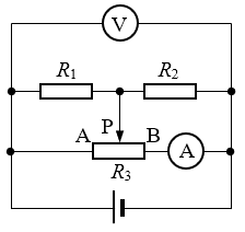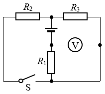 230.如图所示电路中,变阻器R1的最大电阻为12 Ω,电阻R2=12 Ω,R3=2.5 Ω,变阻器滑片P恰位于中点。当S闭合时,电压表数为3 V,此时电源发出的总功率为9 W,电源由4节电池串联成。求: