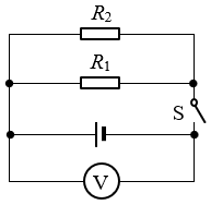 38.电阻R1和R2串联后接入电路,电路总电压为U=2 V,消耗的总电功率为P=1 W,电阻R1=1 Ω,则电阻R2=_________Ω。