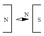 4.如图所示,两个条形磁铁并排放置,在图中画出甲磁铁N极所受磁场力的方向和S极所受磁场力的方向,甲磁铁所受的合磁场力方向是___________。