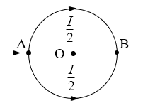 15.如图所示,电流从A点分两路通过对称的环形支路汇合于B点,且两支路中的电流相等,则环形支路中心O点的磁场方向是( )。