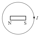 20.首先发现电流磁效应的科学家是__________。如图所示,一根条形磁铁与圆导线环在同一平面内,圆环中通以顺时针方向的电流,此时条形磁铁所受磁场力的情况是______________________。