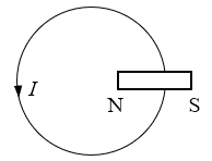 21.如图所示,一根条形磁铁与圆导线环在同一平面内,条形磁铁的N极在环内,S极在环外,圆环中通以逆时针方向的电流,此时条形磁铁所受磁场力的情况是___________。
