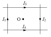 27.如图所示,在同一平面内有四条彼此绝缘的通电直导线,四根导线中的电流大小I1=I3>I2=I4,要使四根导线所围矩形中心处O点的磁场增强,电流被切断的应是( )。