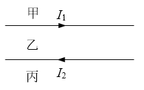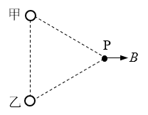 28.如图所示,甲、乙两根垂直于纸面放置的长直导线中通以大小相等的电流,两导线旁有一点P,P点到甲、乙两导线的距离相等,要使P点的磁场方向水平向右,则甲、乙中所通的电流方向应为( )。