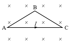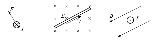 96.一段长直导线长为L=1 m,其中通有I=1 A的如图方向的稳恒电流,由于它处在匀强磁场中,因而受到垂直于纸面向外的大小为F=1 N的磁场力作用,据此该磁场的磁感应强度的( )。