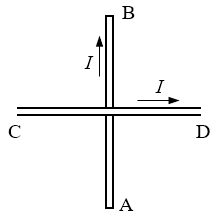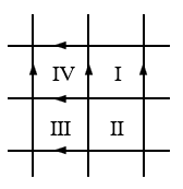 78.如图所示,两条绝缘导线十分接近地垂直交叉放置,流过每条导线的电流I大小相等,方向如图,则有某些点的磁感强度为零的区域是( )。