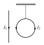 84.如图所示,两个相同的圆环导线圈相互垂直放在一起,竖直的环固定,水平的环可绕轴OO′转动,两环中通以如图方向的电流,水平环的外边电流向右,则水平环将( )。